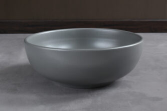 Lavabo tròn bằng sứ màu xám mang phong cách Châu Âu hiện đại, phù hợp trong không gian kiến trúc nội thất White & Grey hoặc Colour-Block.
